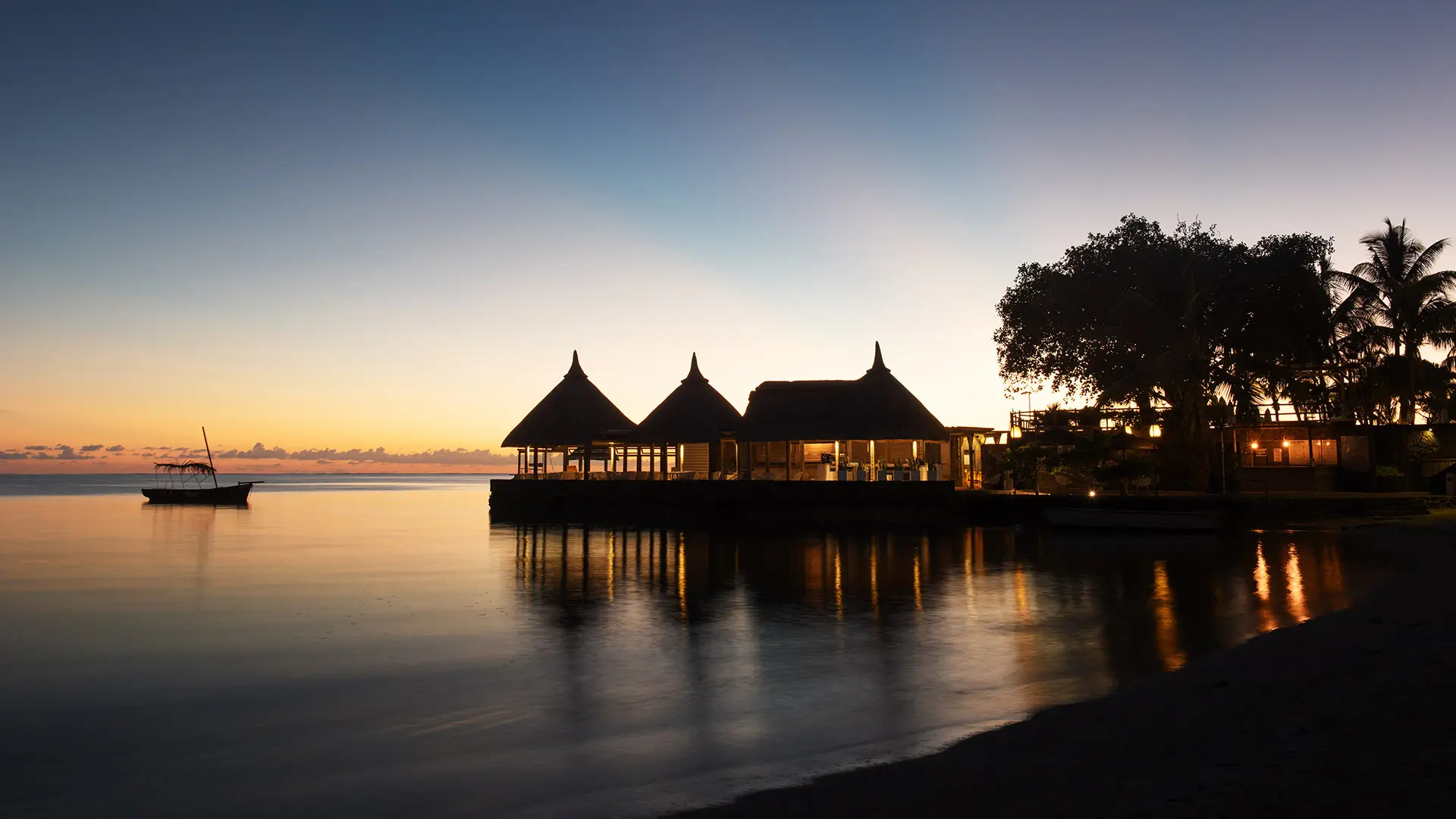 In a chic setting, with a large opening onto the Grand Gaube lagoon, the Poudre d'Or bar is ideal for enjoying a coffee, an after-dinner drink or a cocktail at the bar. During the day, you can order savoury snacks and crêpes, while in the evening there is plenty of music and entertainment.
